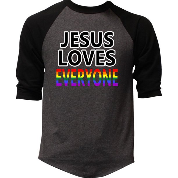 Men S Jesus Loves Everyone Kt T194 Charcoal Black Raglan Baseball T Shirt 2x Large Charcoal Black Walmart Com